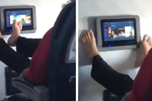 Passagier "füßelt" sich durchs Bordprogramm: Das Netz hebt ab vor Wut