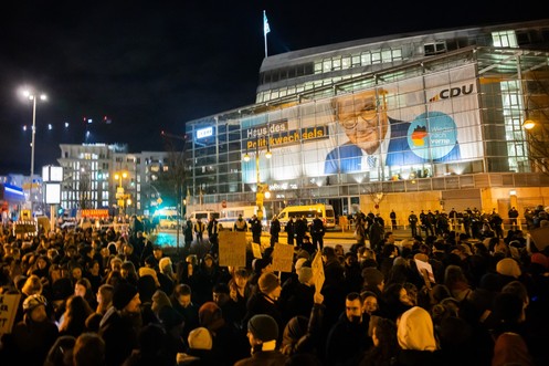 Tausende Menschen demonstrieren vor CDU-Zentrale