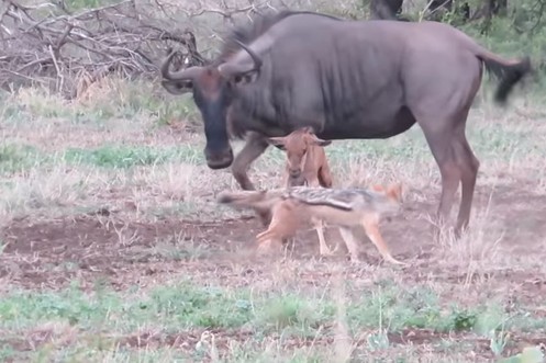 Schakale wollen Gnu-Baby fressen – doch sie haben die Rechnung ohne dessen Mutter gemacht