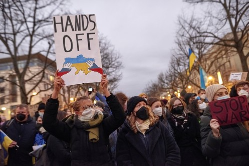Gegen Putin, für Sanktionen: Hunderte Menschen zeigen in Berlin ihre Solidarität mit der Ukraine