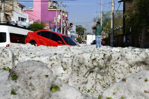 Von wegen Hochsommer! Hier wird eine mexikanische Stadt unter Hagel begraben