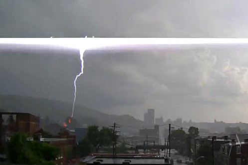 Es regnet und regnet in Pittsburgh: Plötzlich kracht dieser "Teller-Blitz" vom Himmel
